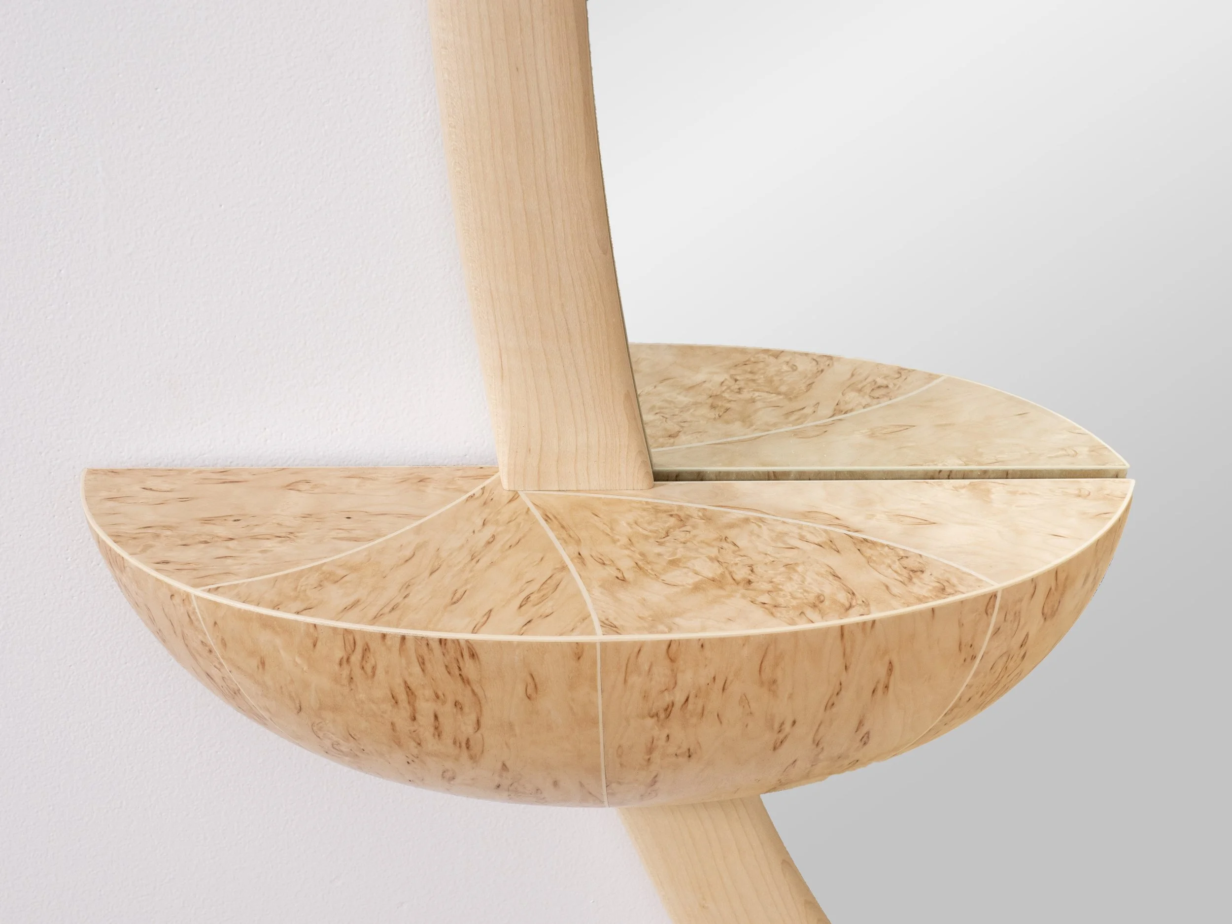 This piece is show in maple, with two veneered shelves in karelian birch. It is available to purchase, but can also be modified to fit your space. Feel free to reach out with any questions.