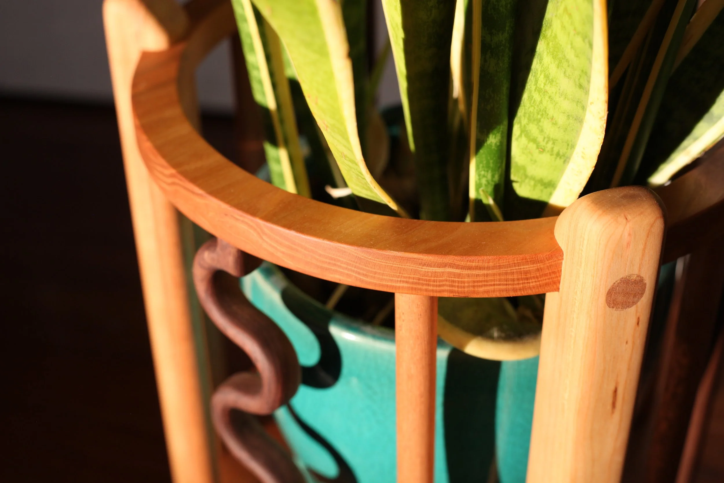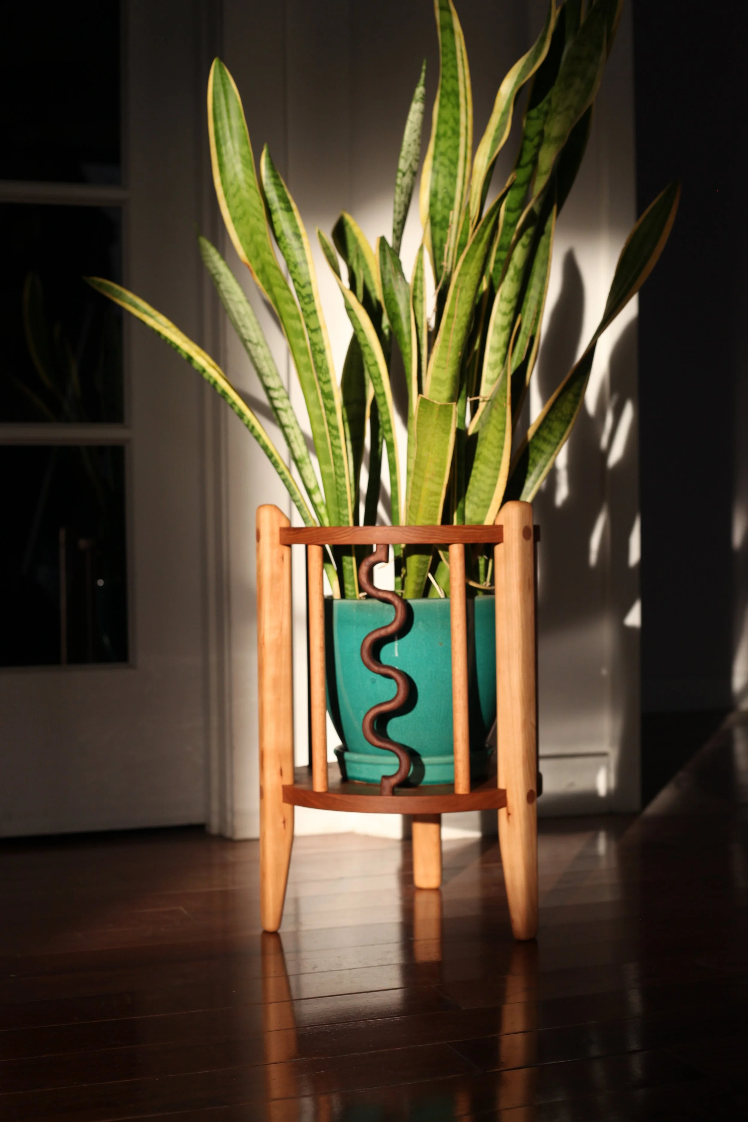 This lovely friend of greenery and growth is a plant stand that can be used in two directions, offering flexibility for the shape and size of the pot used with it.